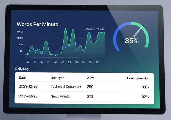 最佳方法是計算有效閱讀率(ERR):WPM乘以理解百分比(例如300WPM x 85%理解力 = 255ERR)。我們網站的測驗工具能自動計算,提供更清晰的效率評估。